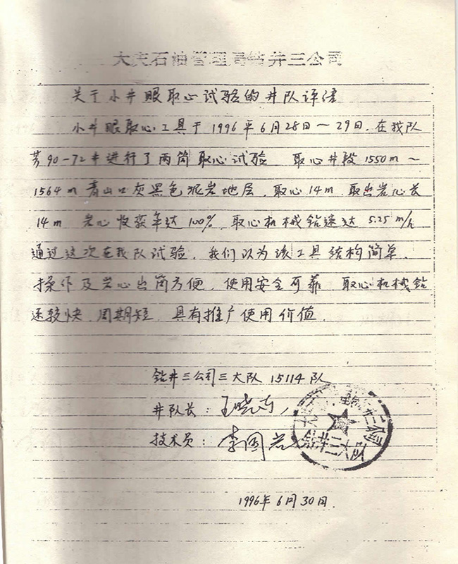 中國大慶達(dá)美取芯技術(shù)中心
